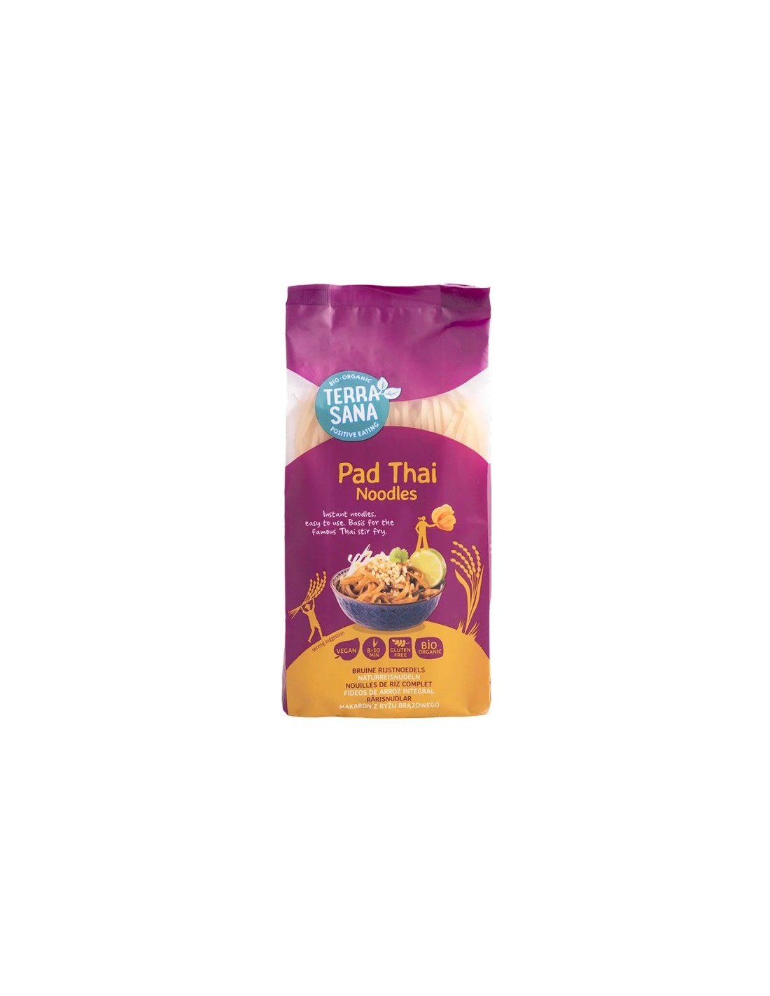 TerrasanaFideos pad thai de arroz integral ecológico, tradicionales, sin gluten, ideales para preparar salteados tailandeses con verduras, tofu, huevo o gambas, etc., fácilmente. Envase de 250 g